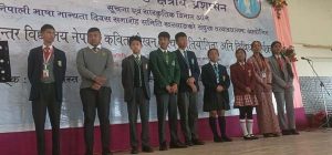 खरसाङ, (निसं)ः गोर्खाल्याण्ड क्षेत्रीय प्रशासनको सूचना अनि सांस्कृतिक विभागको र भाषा मान्यता दिवस समारोह समितिको आयोजनामा खरसाङ्मा भाषा दिवस समारोह सम्पन्न भएको छ। उक्त कार्यक्रमको अध्यक्षता जीटीएको सूचना अनि सांस्कृतिक विभागको कार्यकारी सभासद अनोश थापाले गरेका थिए भने प्रमुख अतिथिको रुपमा खरसाङ नगरपालिकाको चेयरम्यान ब्रिगेन गुरुङ उपस्थित रहेका थिए। कार्यक्रममा विशिष्ट अतिथिको रुपमा खरसाङ पञ्चायत समितिको सभापति अनु छेत्री, कार्यकारी सभासदद्वय कल्पना प्रधान र रतन थापा, सभासद श्याम शेर्पा, खरसाङ नगरपालिकाको भाइस चेयरम्यान सुवास प्रधान लगायत अन्यहरु उपस्थित रहेका थिए।अतिथिहरुको बाहुलीबाट धुप दीप प्रज्वलन गरी अनि नेपाली भाषा मान्यताको आन्दोलनका दिवंगत भाषा सग्रामीहरुलाई श्रध्दाञ्जली अर्पण गर्दै मौन धारण साथै राष्ट्रिय गान गाएर कार्यक्रम शुरु गरिएको थियो। सबिना गिरीले सञ्चालन गरेको कार्यक्रममा स्वागत सम्भाषण आयोजक समितिको सचिव एंव गोर्खा जनपुस्तकालय खरसाङ्को मूल सचिव विनोद रसाइलीले राखेका थिए। कार्यक्रममा सूचना अनि सांस्कृतिक विभागको सह निर्देशक भानुकान्त घिसिङले भाषा मान्यता दिवस समारोह विषयमा साथै खरसाङ पञ्चायत समितिको सभापति अनु छेत्रीले नेपाली भाषाको व्यवहारिक प्रयोग विषयमा वक्तव्य राखेका थिए। यसै कार्यक्रममा खरसाङ महकुमा अन्तर्गत पर्ने 10 वटा उच्चतर माध्यमिक विद्यालयहरुलाई लिएर कविता वाचन प्रतियोगिता आयोजना गरिएको थियो। यस प्रतियोगितामा निर्णायकको रुपमा कवि बालकृष्ण थामी, प्रकाश प्रधान र कवि आरती ठकुरी रहेका थिए। यस प्रतियोगितामा प्रथम केएन मेमोरियल एकाडेमी सिटोङ्का सक्षम राई, दोस्रो सन्त जोसेफ कन्या उच्चत्तर माध्यमिक विद्यालयकी रमित पन्दी लेप्चा र तेस्रो सन्त अगस्टिनको प्रज्वल थापा भएका छन्। यस प्रतियोगितामा प्रथम र दोस्रो हुने दुईजना विद्यार्थीहरु दार्जिलिङ्को लागि चयन भएका छन्। त्यसरी नै विद्यार्थीहरुलाई लिएर वाक पटुता प्रतियोगिता आयोजना गरिएको थियो जसमा 7 वटा विद्यालयहरुका विद्यार्थीहरुले भाग लिएका थिए। यस प्रतियोगितामा निर्णायकको रुपमा पारसचन्द्र आले र उषाकिरण सत्यदर्शी रहेका थिए। यस वाक पटुता प्रतियोगितामा प्रथम पुष्परानी विद्यालयका अपित खवास प्रथम, सन्त जोसेफ कन्या विद्यालयकी आस्था सुब्बा दोस्रो र ग्रेल हिल पब्लिक स्कूलकी अन्वेषा प्रधान तेस्रो भएका छन्। यसै कार्यक्रममा कवि गोष्ठीको पनि आयोजन गरिएको थियो जसमा खरसाङ क्षेत्रका कविहरुले कविताहरु वाचन गरेका थिए। यस क्रममा कविहरु उषाकिरण सत्यदर्शी, बालकृष्ण थामी, द्वारिका छेत्री, आरती ठकुरी, रचिता छेत्री, प्रसन्नता छेत्री आदिले कवित