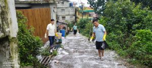 खरसाङको द ग्रेस इभाञ्जलिकल चर्चद्वारा मानिसहरु हिँड्ने बाटोमा ब्लिचिङ छर्ने कार्य