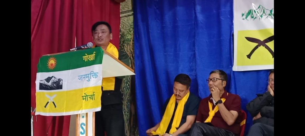 दार्जीलिङ,30 जुन(निसं): आइतबार दार्जीलिङ शहर नजिक मध्य भोटिया बस्ती जागृती सेवक समिति भवनमा शंकर राईको सभापतित्वमा गोर्खा जनमुक्ति मोर्चा फुबछिरिङ्ग-पान्दाम समष्टिको एक कर्मी सभा अध्यक्ष बिमल गुरुङको उपस्थितिमा सम्पन्न भयो। सभालाई सम्बोधन गर्दै युवा मोर्चा केन्द्रिय सह-सचिव सोबित राईले वर्तमान राजनैतिक परिवेशबारे जानकारी गराउदै भने, गोर्खा जनमुक्ति युवा मोर्चा केन्द्रिय समितिको एक प्रतिनिधि टोलि , युवा अध्यक्ष नोमन राइको प्रतिनिधित्वमा , अध्यक्ष बिमल गुरुङको विशेष निर्देशमा आगमी 4 अनि 5 जुलाईको दिन बोडोल्याण्ड टेरोटोरियल रिजान-को सम्झौतामा हस्ताक्षर गर्ने अल बोडो स्टुडेन्ट युनियनको महासचिव लरेन्ज इस्लारी अनि उनको सम्पुर्ण टोलि संग भेटवार्ता गर्न 3 जुलाई को दिन असम (बोडोलाण्ड ) प्रस्थान गर्ने जानकारी राईले दिए।