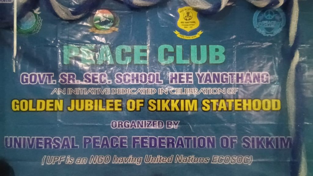 सिक्किम राज्यताको स्वर्ण जयन्तीको अवसरमा, सरकारी वरिष्ठ माध्यमिक विद्यालय हि-याङथाङमा शान्ति क्लबको विशेष कार्यक्रम मङ्गलबार उत्साहपूर्ण वातावरणमा सम्पन्न भएको थियो। उक्त कार्यक्रमको आयोजना युनिभर्सल पिस फेडरेसन अफ सिक्किम (UPF) ले गरेको थियो, जसले संयुक्त राष्ट्रसंघको ECOSOC मान्यता प्राप्त गरेको छ। कार्यक्रमलाई विशेष बनाउन यस वर्षको अन्तर्राष्ट्रिय युवा दिवस पनि संयुक्त रूपमा मनाइएको थियो। यस अवसरमा विद्यालयका प्राचार्य नारायण बस्नेतको सक्रिय नेतृत्व र प्रेरणादायी सम्बोधनले सम्पूर्ण सहभागीहरूमा जोश जगाएको थियो। साथै, विद्यालयका युनिभर्सल पिस फेडरेसन अनि रेड रिबन क्लबका नोडल शिक्षक तथा सम्पूर्ण विद्यार्थीहरूको उत्साहजनक उपस्थिति कार्यक्रमको मुख्य आकर्षण रहेको थियो।