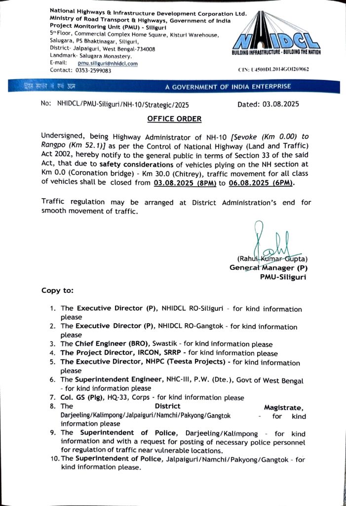 राष्ट्रिय राजमार्ग 10 पहिरोको कारण 6 अगस्तसम्म बन्द