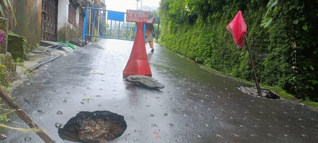 खरसाङ, (निसं)ः खरसाङ्को टुरिष्ट लजबाट उत्तर तर्फ ओह्रालो लाग्ने कप्तान सुरज शर्मा पथ (बाईपास रोड) सुधपा टोलमा मन्टभियटको चौरस्ता नजिक क्षतिग्रस्त बनेको छ। बिहीवार दिनभरी अनि राति भएको लगतार वर्षाको कारण यहाँको झोड़ामा लगतार बगेको भलको कारण यो सड़क मुन रहेको कल्भर्टको देवाल भत्किएर अनि जमिन काटिएर सड़क क्षतिग्रस्त बनेको हो। रोड मुनि रहेको कलभर्टको देवाल अनि माटो भलले बगाएको हुँनाले सड़क मुनिको भाग खोक्रो बनेको छ। रोड मुनिको जमिन खोक्रो बनेकोले सड़कमा भ्वाङ परेको छ भने ठाउँ-ठाउँमा सड़क दबिएको अवस्थामा रहेको छ। यो सड़क अनि झोड़ाको दाहिने-देब्रे दुवै स्थानमा घर-बिल्डिङ रहेकोले सड़क मुनिको जमिन भलले अझ काटेर सड़क घरको सुरक्षा देवाल भत्किएको खण्डमा यहाँको दुई बल्डिङलाई पनि खतरा हुने सम्भावना देखिएको छ। स्थानीय कतिपय मानिसहरूले बताए अनुसार यहाँ रहेको झोड़ाको सुरक्ष देवाल अघिबाट नै भलले भत्काएको थियो। झोड़ाको देवाल भत्किन्दै सड़क मुनको कलभर्टको देवालसम्म भत्काएर सड़क मुनको माटो भलले काटिदिएपछि यो जोखिम उत्पन्न भएको हो। यहाँको सड़क क्षतिग्रस्त बनेकोले प्रशासनले यहाँबाट यान-वाहनको आउजाउमा रोक लगाएको छ। सड़क क्षतिग्रस्त भएको खबर पाएपछि पुलिस प्रशासनका अधिकारीहरू, 28 नम्बर चिम्नी देवराली समष्टि सभासद श्याम शेर्पा, खरसाङ अभियान्त्रिकी विभागका अभियन्ताहरूले यहाँको भ्रमण गरेर क्षतिग्रस्त सड़कको रिपोर्ट लिएका छन्। सभासद् श्याम शेर्पाले सड़कको मरमति चाँड़ै आरम्भ गर्ने बताएका छन्।